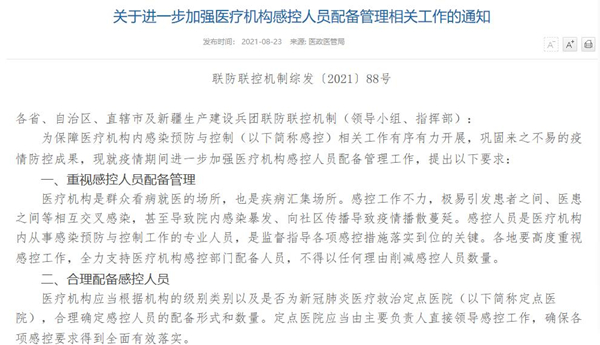 聯(lián)防聯(lián)控機(jī)制綜合組:不得以任何理由削減醫(yī)療機(jī)構(gòu)感控人員數(shù)量