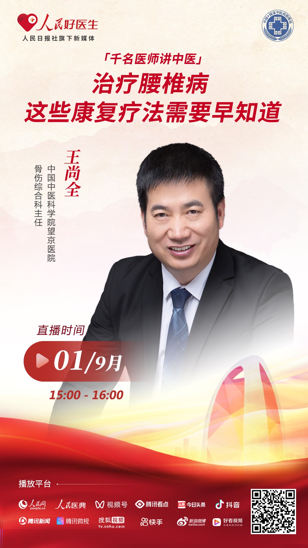 近年來,腰椎病在人群中的發病呈現出低齡化趨勢。學生、長期從事電腦工作者、中老年人都是腰椎病的多發人群。腰椎病都有哪些類型?如何預防?患病之后怎樣自我康復?9月1日15:00,人民日報社旗下新媒體平臺“人民好醫生”與國家中醫藥管理局辦公室聯合推出的“千名醫師講中醫”系列直播,本期將邀請中國中醫科學院望京醫院骨傷綜合科主任王尚全做客直播間,為大眾詳細科普腰椎病的中醫康復治療法。