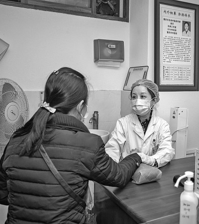 重慶市中醫院肛腸科醫生徐月(右)在肛腸科門診接診。新華社發