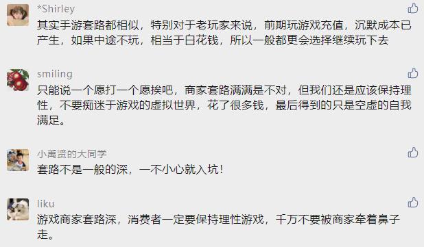 玩家評論。來源:上海市消保委微信公眾號