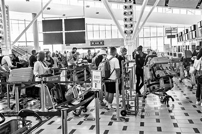 11月29日,旅客在南非開普敦國際機場辦理值機手續。為防范新冠變異病毒奧密克戎毒株傳播,多國近日對南非等非洲國家的航班和旅客實施入境限制,并升級防控措施