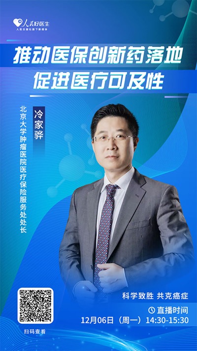 12月6日14:30,北京大學腫瘤醫院醫療保險服務處處長冷家驊做客人民好醫生客戶端,給大家解讀推動醫保創新藥落地,促進醫療可及性。為網友答疑解惑,歡迎屆時收看。