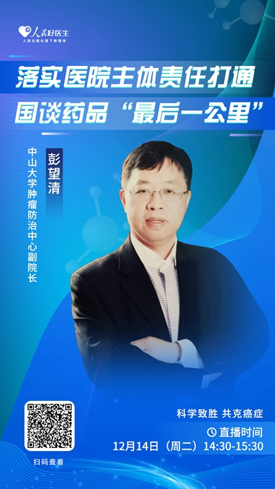 12月14日14:30,人民日報社旗下新媒體平臺“人民好醫生”將邀請中山大學腫瘤防治中心副院長彭望清做客直播間,詳談醫保政策落地實施情況,千萬不要錯過。