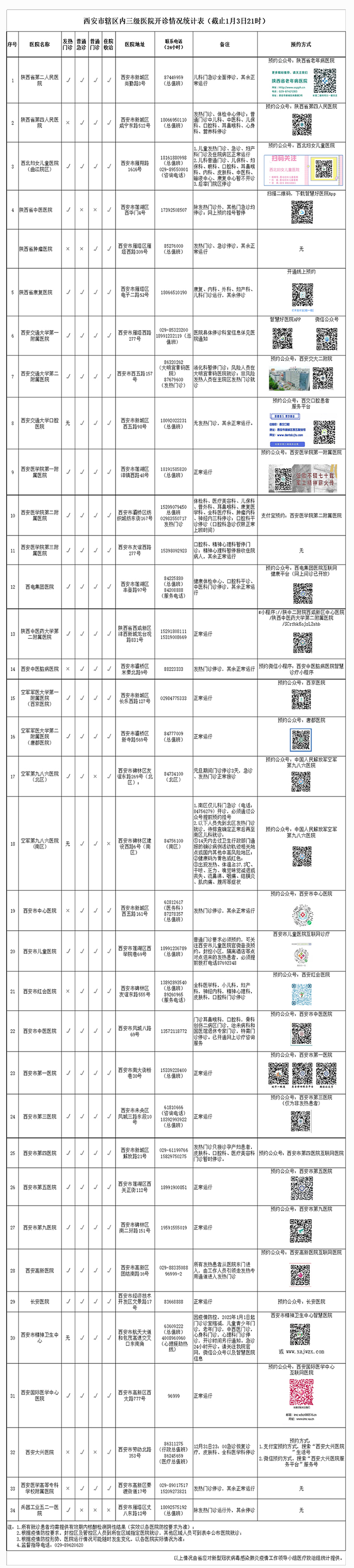 陜西省衛生健康委每日在官網疫情防控醫療救治專欄,更新公布西安市內各三級醫院運行狀態,提供精準就醫服務信息。西安市二級及以下醫療機構、西安以外涉疫地市醫療機構開診情況由當地公布。
