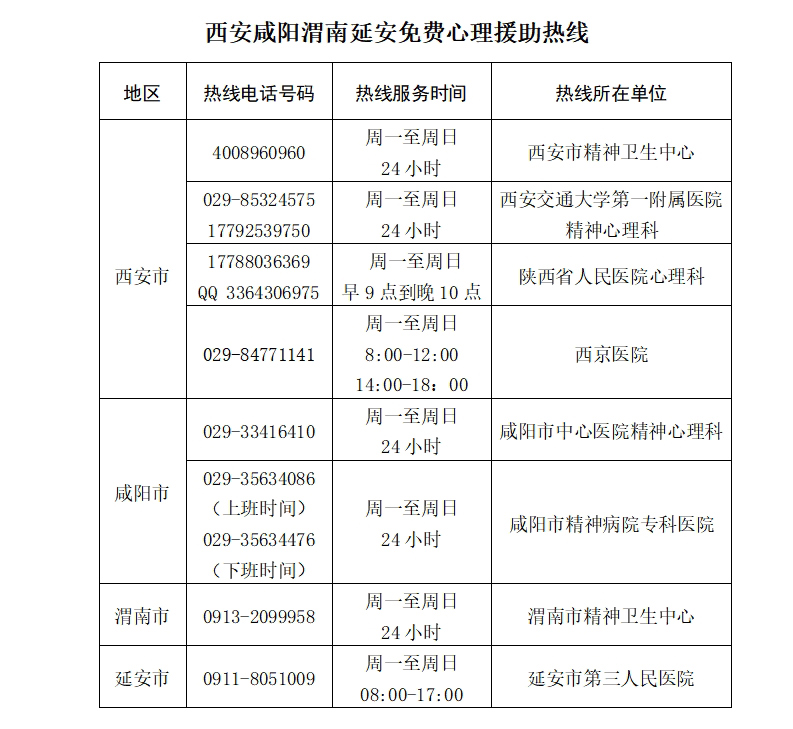 省新冠肺炎疫情醫療救治心理干預專家組,組建心理援助熱線工作團隊,24小時為疫情心理求助者提供心理援助服務。同時,省衛生健康委會同省政務服務中心在省12320衛生熱線開通疫情心理援助熱線專席,依托陜西12345對全省有關疫情心理干預的訴求進行引導和分轉。