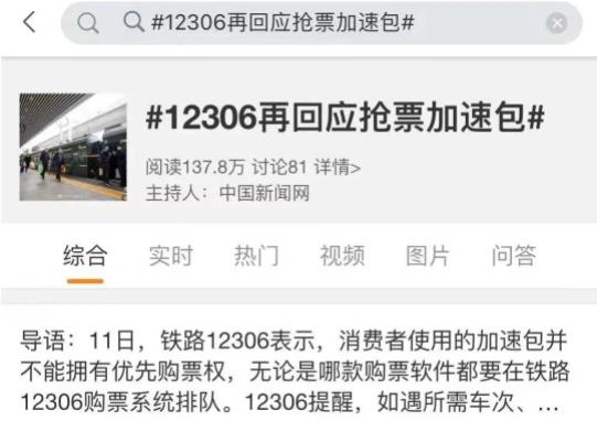 其實(shí),此前鐵路12306就曾多次回應(yīng),消費(fèi)者使用的加速包并不能擁有優(yōu)先購票權(quán),無論是哪款購票軟件都要在鐵路12306購票系統(tǒng)排隊(duì)。12306提醒,如遇到所需車次、席別無票,可在線排隊(duì)候補(bǔ)。當(dāng)對應(yīng)的車次、席別有退票時,系統(tǒng)將自動購買車票。