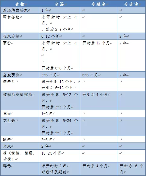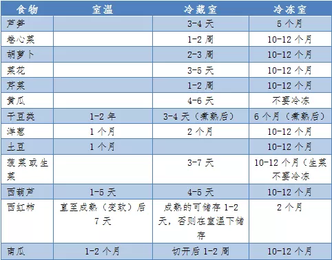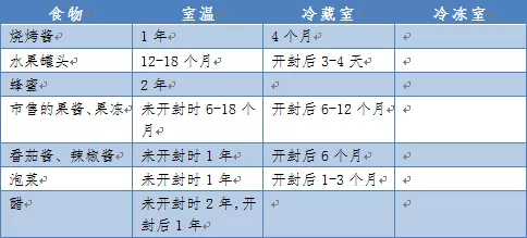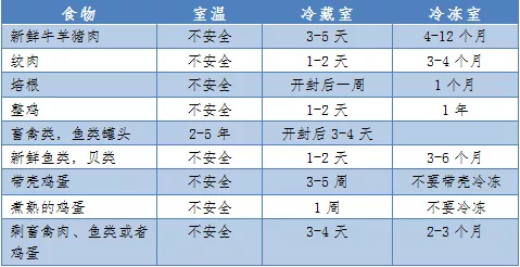 不同類別食品在不同保存條件下,如何保持最佳品質和安全性的建議存儲時間?為此,陜西省疾控中心專門整理了相關表格,具體如下: