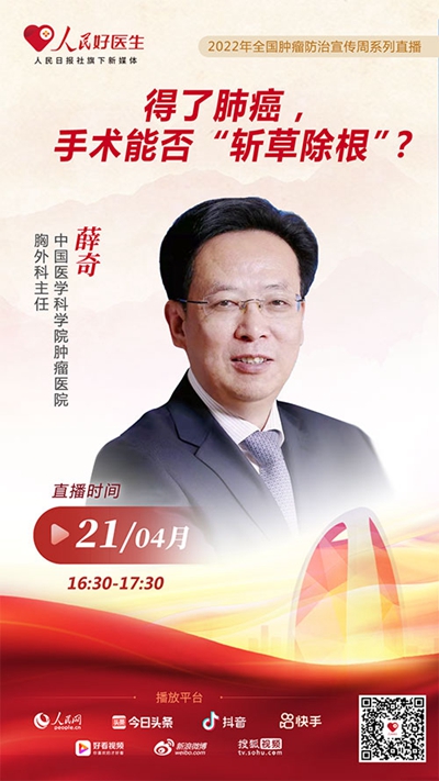 說起肺癌,大家并不陌生。不僅擁有較高的發(fā)病率與死亡率,而且患者的發(fā)病年齡也逐漸年輕化……因此,公眾對肺癌的正確認知就變得尤為重要。4月21日16:30至17:30,“人民好醫(yī)生”客戶端將邀請中國醫(yī)學科學院腫瘤醫(yī)院胸外科主任薛奇做客演播室,從外科醫(yī)生的角度與我們一起來說說肺癌防治那些事兒。
