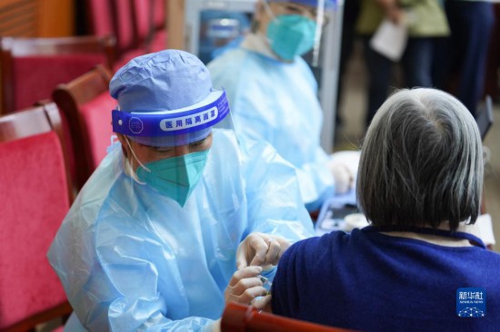 4月18日,醫護人員在北京市東城區為老年人接種新冠疫苗。新華社記者鞠煥宗攝