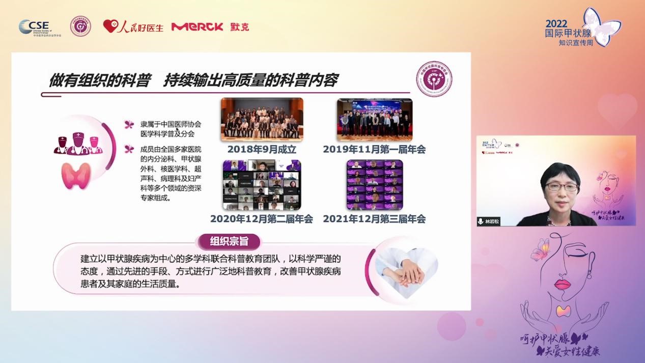 “雖然我國甲狀腺疾病患者龐大,但患病知曉率低,且相關健康信息獲取渠道繁雜、內容真偽難辨。”林巖松說,為科學系統地開展科普教育,甲狀腺科普學組已連續三年舉辦甲狀腺科普視頻大賽,通過流行的短視頻形式對甲狀腺疾病進行趣味、生動的科普傳播,讓公眾獲得兼具權威性、科學性與趣味性的醫學科普知識,以期實現改善甲狀腺疾病患者及其家庭的生活質量。今年將啟動第四屆甲狀腺科普視頻大賽。“希望發揮社會各界力量,共同提升公眾對于甲狀腺疾病的認知,對女性等重點人群廣泛普及甲狀腺疾病癥狀和危害,敦促盡早篩查、就醫”。