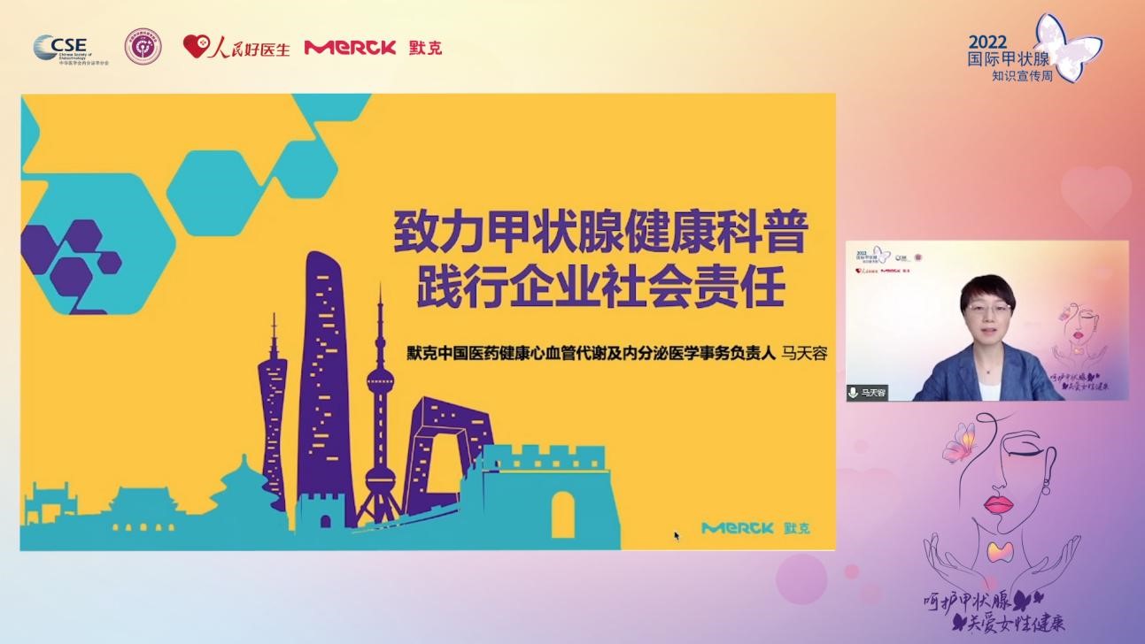 健康中國行動推進委員會辦公室副主任、國家衛健委規劃司司長毛群安,中國疾控中心慢病中心主任吳靜,中華醫學會內分泌學分會名譽主委滕衛平,中華醫學會內分泌學分會副主任委員單忠艷,中國醫師協會醫學科學普及分會甲狀腺科普學組組長林巖松,默克中國醫藥健康心血管代謝及內分泌醫學事務負責人馬天容等線上參與本屆國際甲狀腺知識宣傳周啟動會。