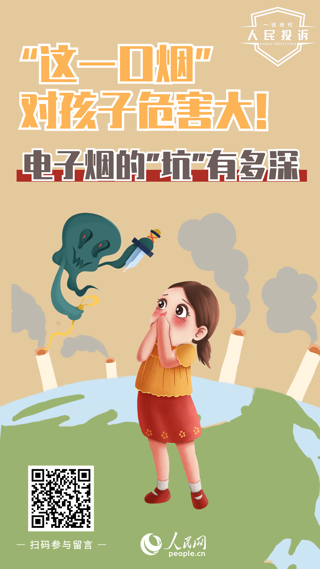 青少年尚處于成長時(shí)期,對(duì)于形式新穎的電子煙,容易疏于防范、跟風(fēng)嘗試,健康危害更大。2022年5月31日是第35個(gè)世界無煙日,恰逢“六一”國際兒童節(jié)即將到來,為守護(hù)青少年身心健康,通過有效維權(quán)切實(shí)保護(hù)未成年人免受電子煙等違法商業(yè)行為的侵害,同時(shí)引導(dǎo)企業(yè)規(guī)范經(jīng)營和平臺(tái)商家自律,多管齊下健全長效監(jiān)管機(jī)制,人民網(wǎng)“人民投訴”平臺(tái)即日起征集相關(guān)維權(quán)線索,如果您遭遇此類權(quán)益侵害,如果您了解相關(guān)領(lǐng)域某些欺詐行為中不為人知的陷阱、黑幕,歡迎您掃碼投訴、曝光。
