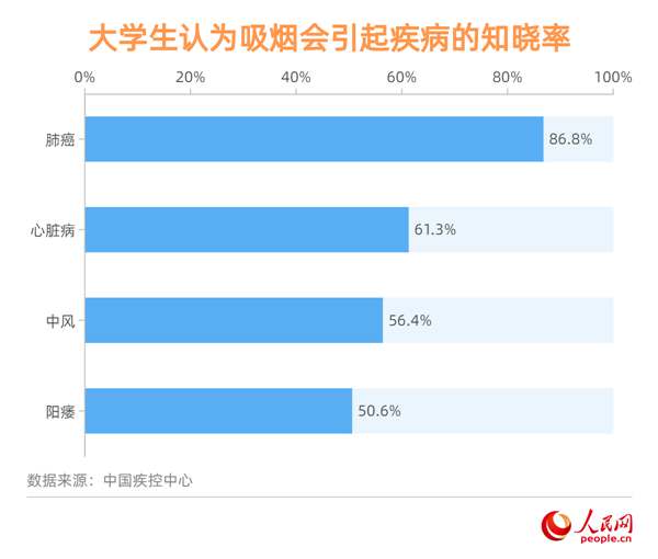 大學(xué)生認(rèn)為吸煙會引起疾病的知曉率。制表:孫紅麗