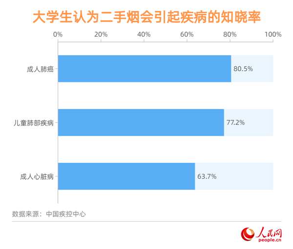大學(xué)生認(rèn)為二手煙會引起疾病的知曉率。制表:孫紅麗