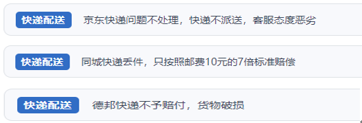 在“人民投訴”平臺上,有網友投訴,“網購一個月未收到貨,物流信息一直停留在‘商品出庫’”;有的反映,“速度還是快的,但好多快遞不送貨上門,快遞員們直接把快遞扔到快遞柜、驛站、便利店,太不方便了”;有的吐槽,“沒有收到貨,商家就不讓使用售后退貨服務”“收貨前訂單無法取消,攔截沒成功,客服不回復”“按了無數次催貨都沒有任何跟進”;此外,在丟件、損壞件的賠付上也令不少消費者鬧心。