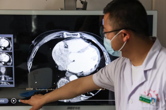 6月7日,貴州省龍里縣人民醫院呼吸科主任田廣通過遠程診斷系統查看患者的醫學影像資料。新華社記者 歐東衢 攝