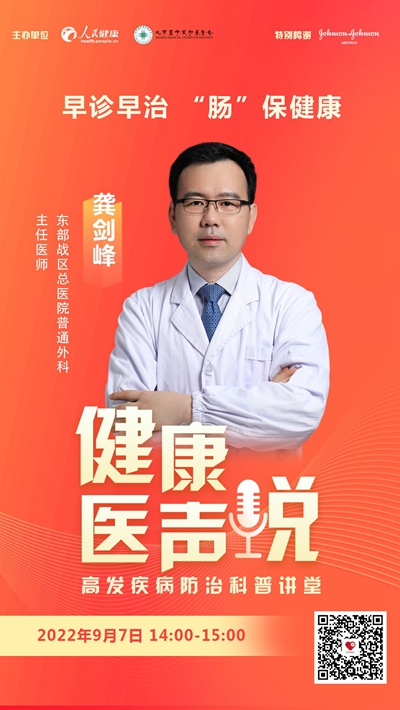 9月7日14:00至15:00,東部戰區總醫院普通外科主任醫師龔劍峰將做客“人民好醫生”客戶端直播間,就結直腸良性病的相關知識與網友進行分享,歡迎屆時收看。