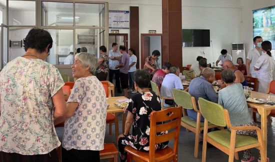 浙江省紹興市一家民營養老服務機構內,老人們在用餐。受訪者供圖