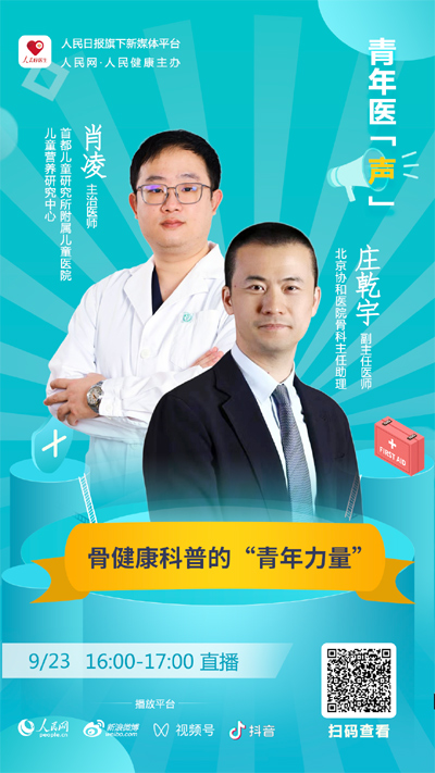 隨著社會生活的不斷發展進步,大眾對于健康領域的科普需求日益增長,如何讓科普內容深入人心,科普形式如何求新求變是每一位健康工作者都在思考的問題。9月23日16:00,北京協和醫院骨科主任助理、副主任醫師莊乾宇,首都兒童研究所附屬兒童醫院兒童營養研究中心主治醫師肖凌將做客“青年醫聲”直播間,和網友們分享關于健康知識的科普創作心得和感悟。