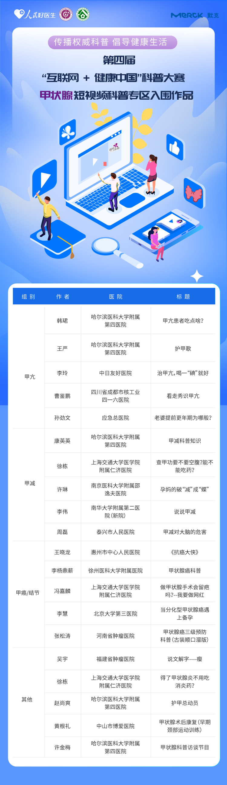 第四屆科普大賽“甲狀腺短視頻專區”入圍名單揭曉