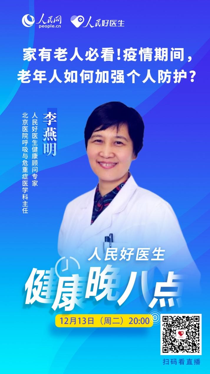 12月13日20:00,《健康晚八點》欄目第二期邀請北京醫院呼吸與危重癥醫學科主任李燕明做客直播間,詳細講解老年人疫情防控要點及感染新冠后的正確治療方法。