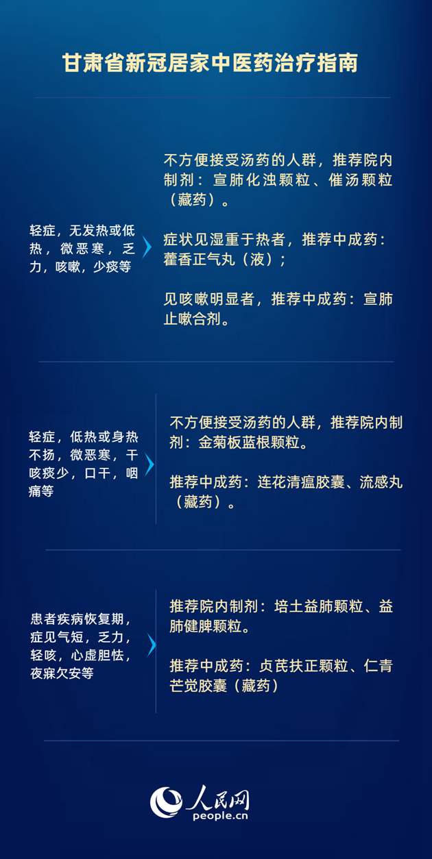 日前,甘肅省新冠肺炎疫情聯防聯控領導小組醫療救治組下發《關于做好新冠病毒感染者居家治療人員中醫藥救治工作的通知》,《通知》明確,對新檢出的無癥狀感染者和輕癥患者,在居家隔離期間,根據具體癥狀選擇相應中藥方劑進行治療。
