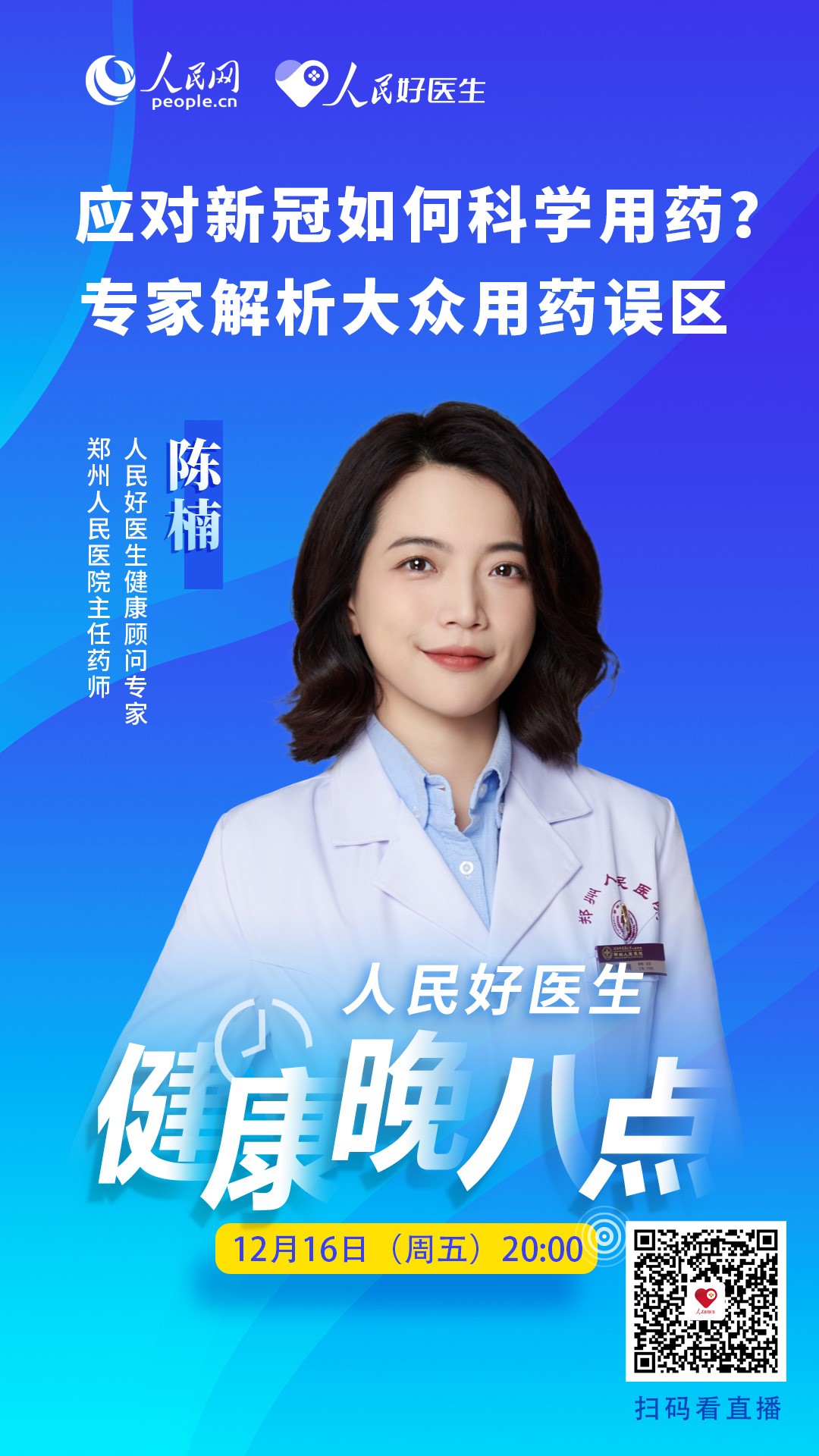 12月16日20:00,《健康晚八點》欄目第五期邀請鄭州人民醫院主任藥師陳楠做客直播間,詳細講解新冠患者如何科學用藥。
