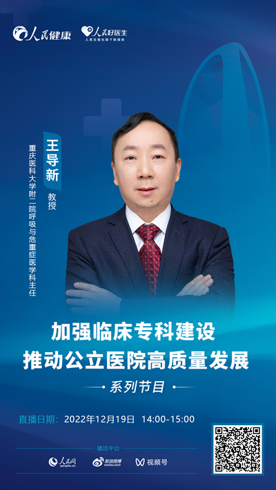 12月19日14:00,重慶醫科大學附二院呼吸與危重癥醫學科主任王導新將做客直播間,就“加強臨床專科建設”的話題與廣大網友進行交流。