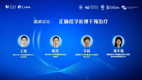 北京大學(xué)人民醫(yī)院眼視光中心主任醫(yī)師王凱作為“正確給予近視干預(yù)治療”圓桌座談環(huán)節(jié)的嘉賓主持人,與溫州醫(yī)科大學(xué)附屬眼視光醫(yī)院副院長(zhǎng)陳浩、首都醫(yī)科大學(xué)附屬北京兒童醫(yī)院眼科主任李莉、首都醫(yī)科大學(xué)附屬北京同仁醫(yī)院眼科醫(yī)學(xué)視光科主任張豐菊,共同探討了近視干預(yù)的話題。