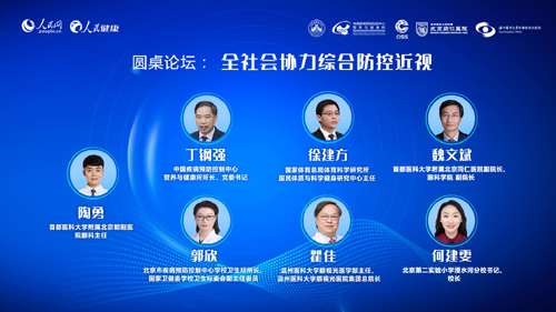 在接下來(lái)的圓桌討論環(huán)節(jié),多位嘉賓分別參與了“全社會(huì)協(xié)力綜合防控近視”和“正確醫(yī)療干預(yù),矯正近視”的話題討論。首都醫(yī)科大學(xué)附屬北京朝陽(yáng)醫(yī)院眼科主任陶勇?lián)巍叭鐣?huì)協(xié)力綜合防控近視”圓桌座談環(huán)節(jié)的嘉賓主持人。中國(guó)疾病預(yù)防控制中心營(yíng)養(yǎng)與健康所所長(zhǎng)、黨委書(shū)記丁鋼強(qiáng),國(guó)家體育總局體育科學(xué)研究所國(guó)民體質(zhì)與科學(xué)健身研究中心主任徐建方,北京市疾病預(yù)防控制中心學(xué)校衛(wèi)生所所長(zhǎng)、國(guó)家衛(wèi)健委學(xué)校衛(wèi)生標(biāo)委會(huì)副主任委員郭欣,首都醫(yī)科大學(xué)附屬北京同仁醫(yī)院副院長(zhǎng)、眼科學(xué)院副院長(zhǎng)魏文斌,溫州醫(yī)科大學(xué)眼視光醫(yī)學(xué)部主任、溫州醫(yī)科大學(xué)眼視光醫(yī)院集團(tuán)總院長(zhǎng)瞿佳,北京第二實(shí)驗(yàn)小學(xué)涭水河分校書(shū)記、校長(zhǎng)何建雯等嘉賓,參加本場(chǎng)圓桌討論,并先后發(fā)表了自己的觀點(diǎn)。