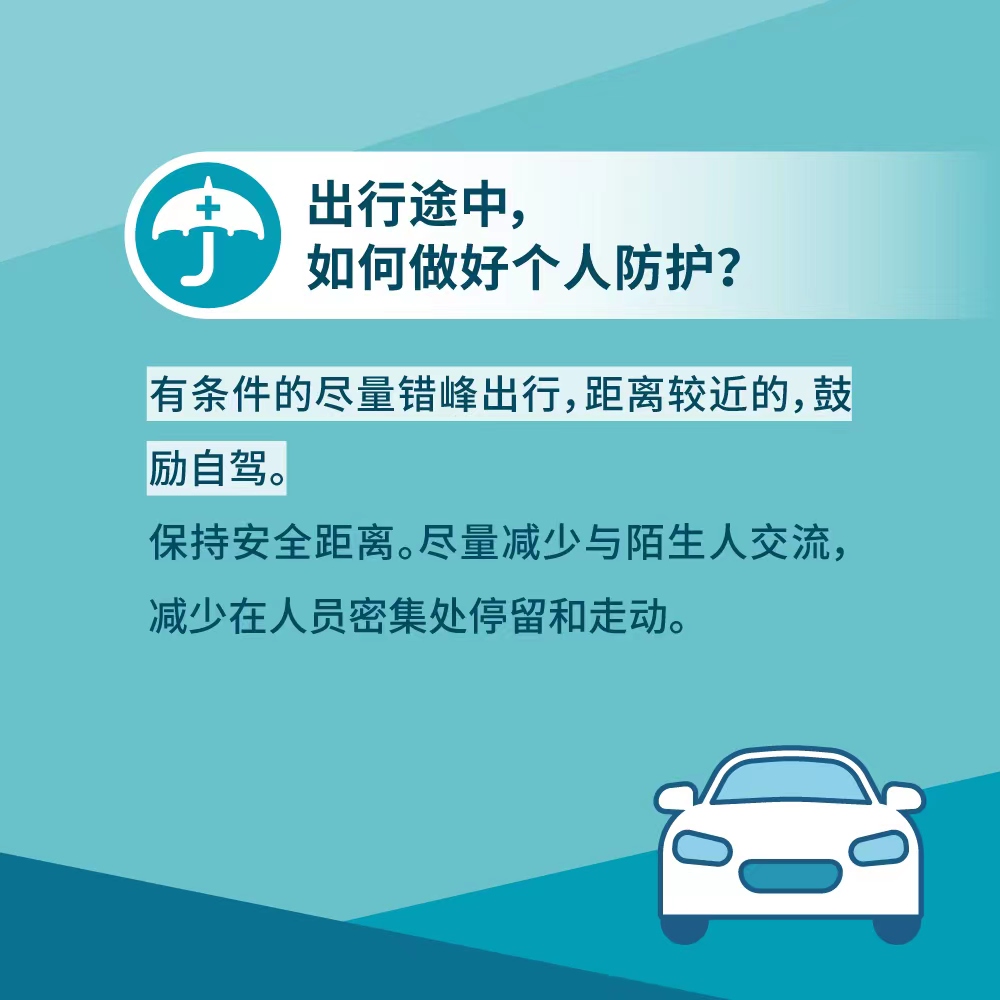 有條件的盡量錯(cuò)峰出行,距離較近的,鼓勵(lì)自駕。
