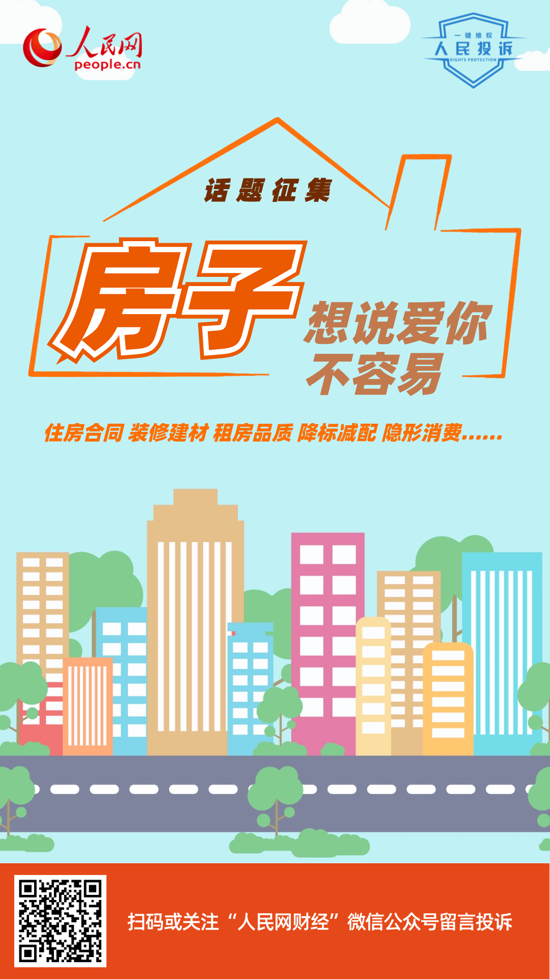 在“人民投訴”平臺上,“新房未達標就強制交房”“建材以次充好,漏水、開裂無法解決”“交房面積與合同不符、小區(qū)亂改規(guī)劃、降標減配”“裝修合同中存在多項隱形消費、惡意增項”“租房品質(zhì)與承諾不符、不處理”等涉住房消費問題被高頻吐槽。為促進住房市場健康發(fā)展和誠信消費,人民網(wǎng)“人民投訴”平臺即日起將征集住房消費領(lǐng)域中購房、租房、裝修等相關(guān)維權(quán)線索,如果您遭遇此類權(quán)益侵害,或了解某些欺詐行為中不為人知的陷阱、黑幕,歡迎您掃碼關(guān)注“人民網(wǎng)財經(jīng)”微信公眾號或掃描“人民投訴·一鍵維權(quán)”微信小程序留言、投訴、曝光。