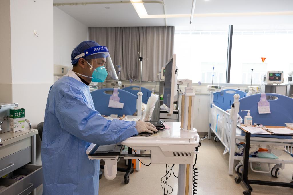 在上海交通大學醫學院附屬新華醫院,兒科急診醫生在輸入病例信息。新華社記者 金立旺 攝