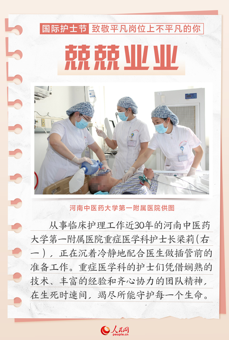 護(hù)士背后是無(wú)數(shù)個(gè)沒有硝煙的戰(zhàn)場(chǎng),他們一次次與病魔戰(zhàn)斗,一次次將患者從死亡線上拉回。無(wú)菌操作、三查七對(duì)、翻身拍背、吸痰輸液……365天,寒來(lái)暑往,他們?nèi)找共环值厥刈o(hù)在患者身旁,凝仁愛之心,聚守護(hù)之力,促人類健康。5月12日是國(guó)際護(hù)士節(jié),人民網(wǎng)記者采訪了8位來(lái)自不同醫(yī)院,奮戰(zhàn)在一線的護(hù)士們,讓我們一起走近“白衣天使”。