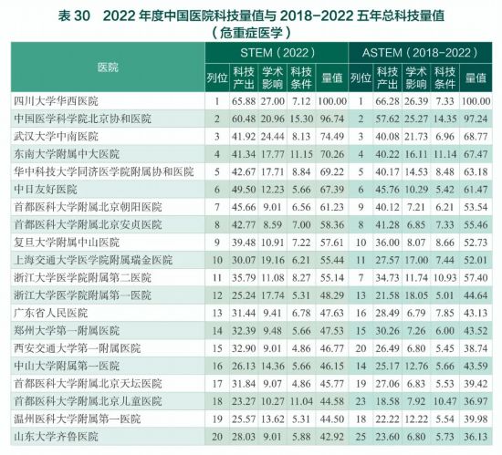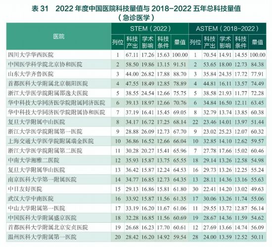 2022年度中國(guó)醫(yī)學(xué)院校/中國(guó)醫(yī)院科技量值(STEM)暨2018-2022五年總科技量值(ASTEM)發(fā)布