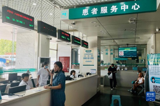 8月6日,在平原縣第一人民醫院患者服務中心內,患者向值班醫生咨詢情況。新華社記者 高天 攝