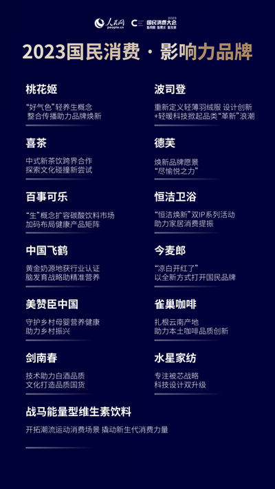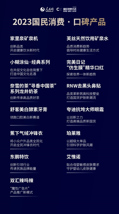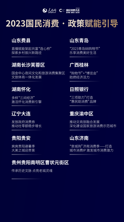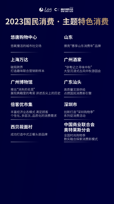 11月22日,由人民網主辦的主題為“新周期·新需求·新發展”的2023國民消費大會在北京舉辦。在2023國民消費創新案例發布環節,包括政策引導賦能、主題特色消費、綠色低碳消費、科技賦能生活、產業迭代創新、影響力品牌、口碑產品、消費風尚引領等八個類別的案例正式揭曉。現將案例名單予以公布。