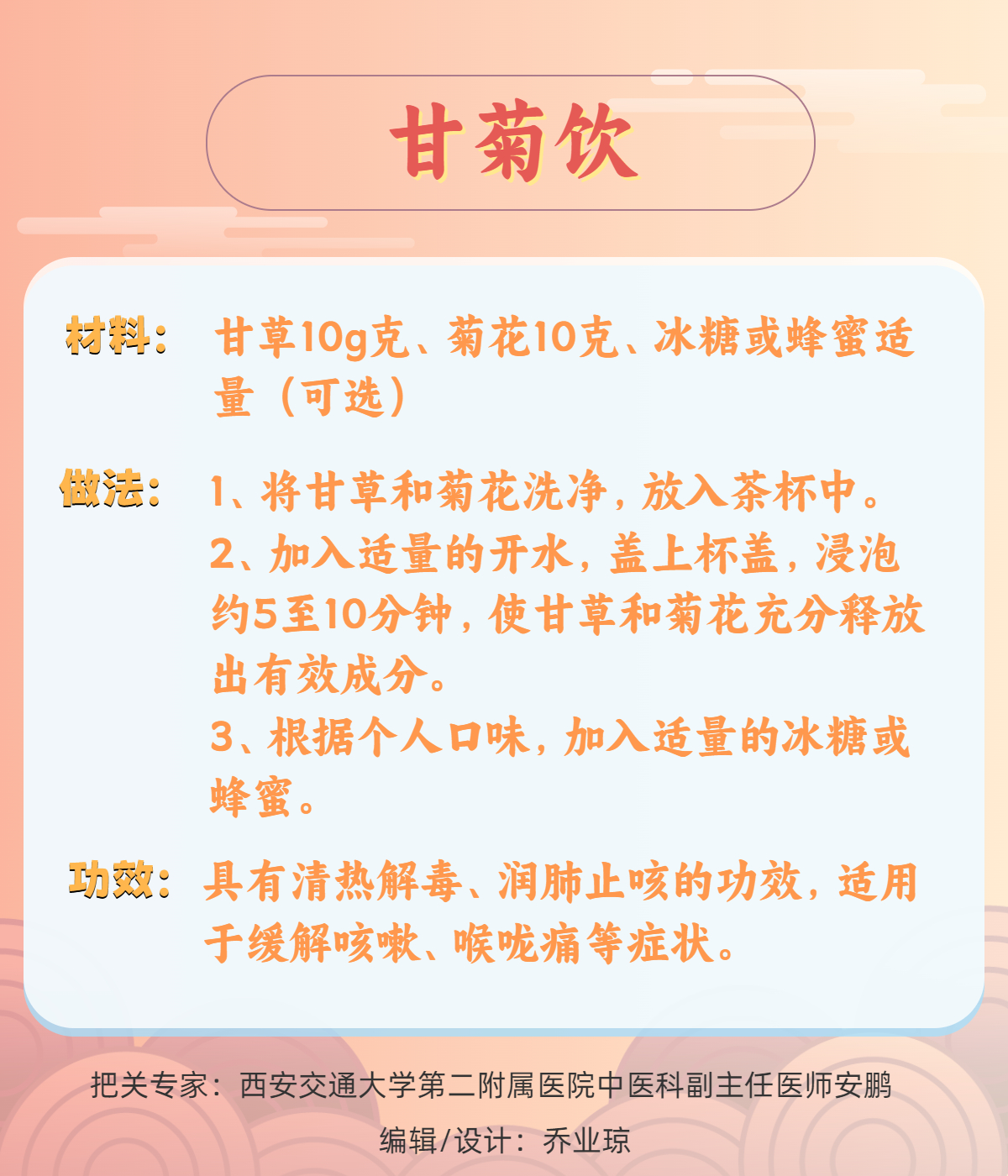 人民網北京2月4日電 (記者喬業瓊)最近不少網友反映,感染呼吸道疾病恢復之后仍然咳嗽不止,尤其是接觸了冷空氣、刺激性氣味、煙霧等,更容易引起咳嗽,影響日常生活。對此,西安交通大學第二附屬醫院中醫科副主任醫師安鵬根據不同情況,對應推薦6款中藥茶飲,以緩解咳嗽的癥狀。