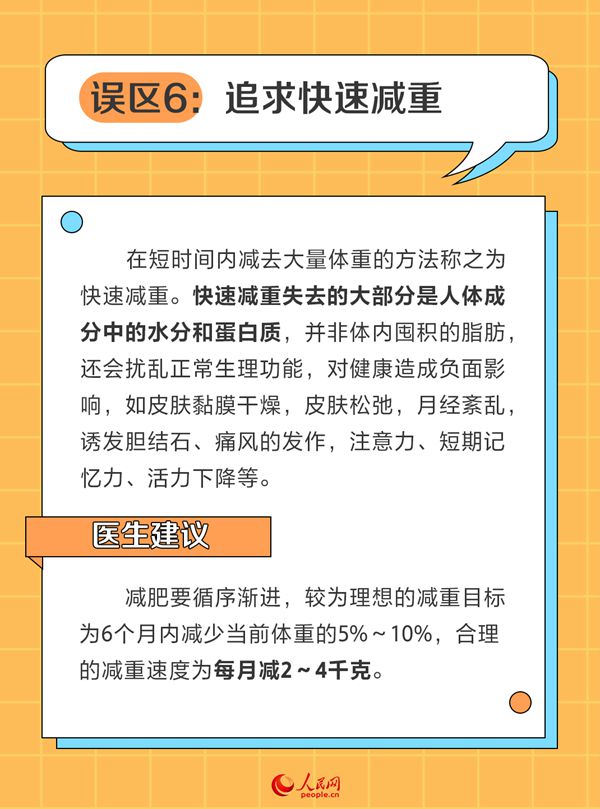明天(5月11日)是世界防治肥胖日。肥胖易引起高血壓、糖尿病、心腦血管疾病、月經(jīng)紊亂、不孕不育甚至腫瘤等疾病。武漢大學(xué)人民醫(yī)院(湖北省人民醫(yī)院)健康管理中心主任徐麗娟在接受人民網(wǎng)記者采訪時表示,超重或肥胖極大影響健康,保持健康體重的理念應(yīng)貫穿全生命周期。以下這些誤區(qū)可能會導(dǎo)致減肥失敗,或可能會對身體造成不良影響,一定要避開。