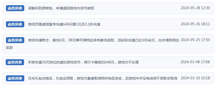 在人民網“人民投訴”平臺上,涉及未成年人網游大額充值,因付款環節驗證充值人實際身份的有效措施缺失引發的糾紛顯著增多。相關典型投訴問題包括實名身份認證成擺設,大額高頻充值無提醒,平臺和游戲方惡意設置退款障礙、退費額度不合理,防沉迷系統“失防”等。