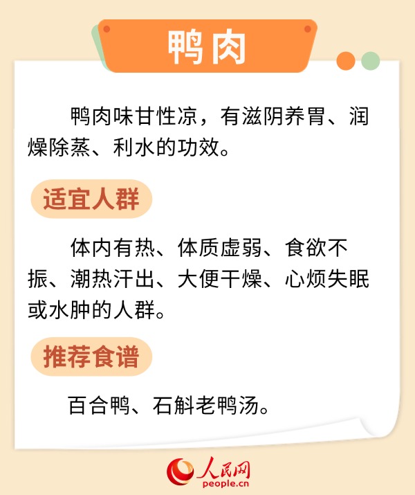 秋季燥邪當令,肺容易感受秋燥之邪。天津中醫藥大學附屬保康醫院主任醫師韓娟在接受采訪時表示,在干燥的秋季,飲食上要開始減辛增酸,適當多食鴨肉、秋梨、百合等食物,以滋陰潤燥、養陰生津。