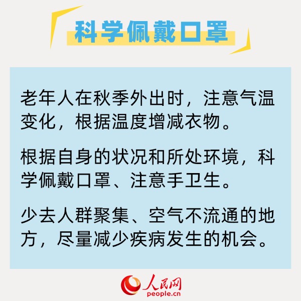 秋季晝夜溫差大,空氣干燥,人體的呼吸系統(tǒng)易受侵襲,容易感染包括流感在內(nèi)的呼吸道傳染病。老年人作為呼吸道傳染病防控的重點人群,需要做好哪些措施?為此,人民網(wǎng)采訪了成都市中西醫(yī)結(jié)合醫(yī)院北區(qū)呼吸內(nèi)科主治醫(yī)師吳季。