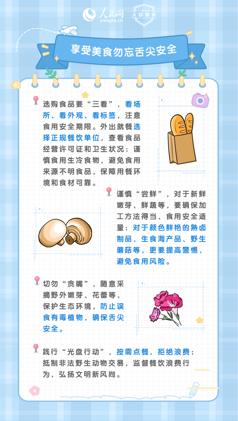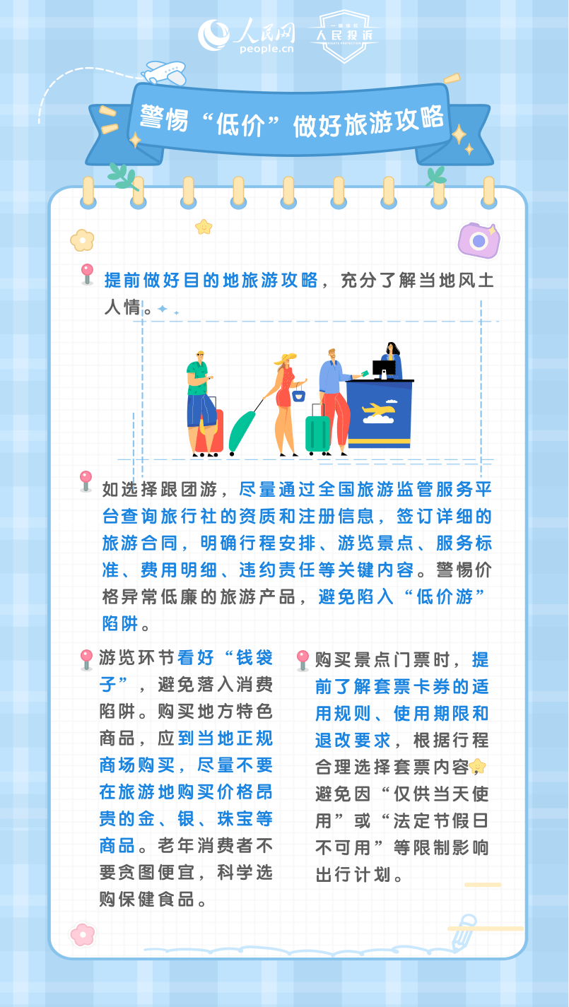 “五一”小長假臨近,消費熱潮即將來襲。人民網(wǎng)“人民投訴”平臺結(jié)合各級市場監(jiān)管部門及消協(xié)發(fā)布的消費提示,從交通出行、酒店住宿、景區(qū)旅游、餐飲娛樂購物等消費投訴易集中領(lǐng)域提醒廣大消費者平安出行、理性消費,過個舒心的“五一”假期。