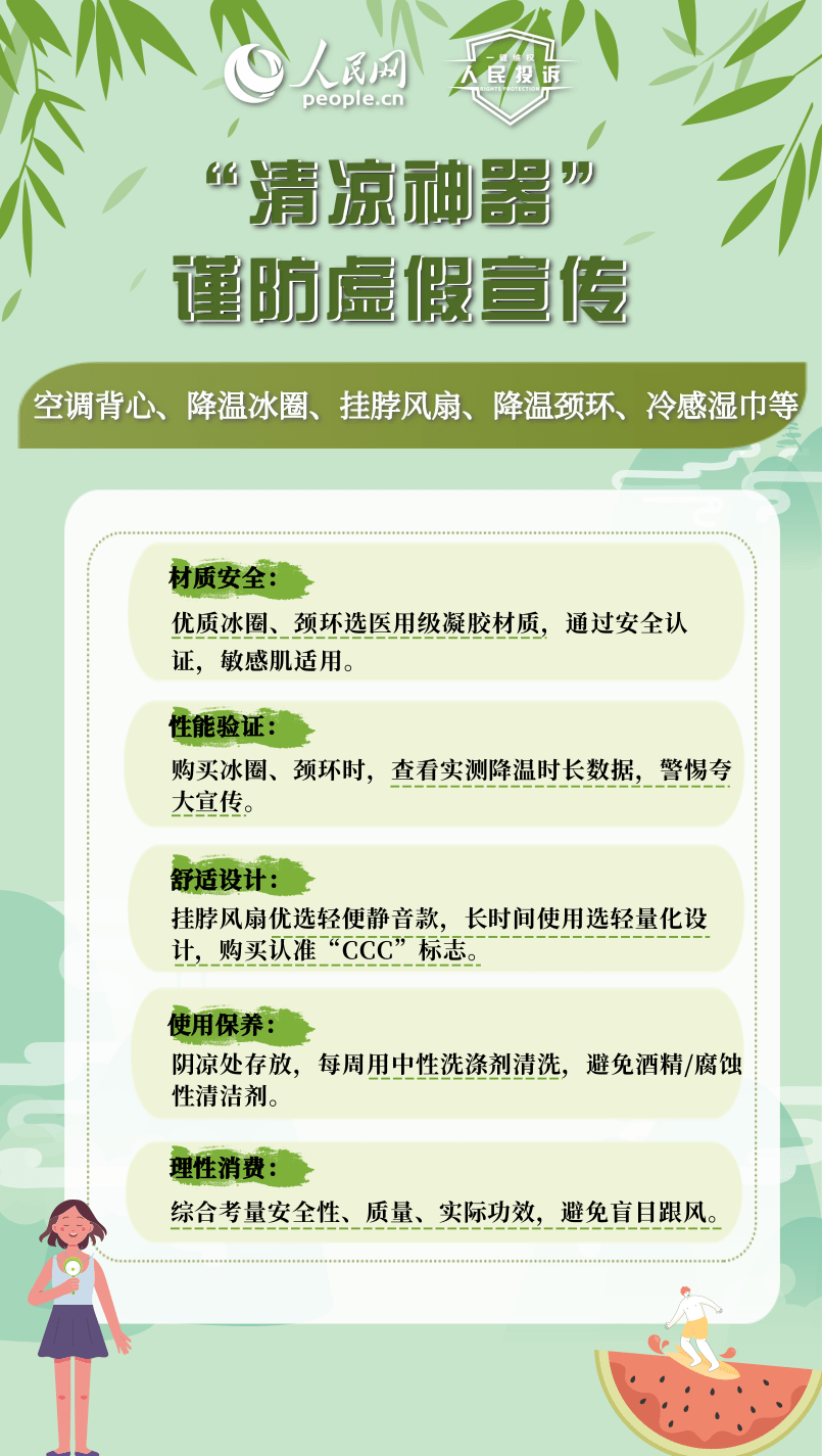 今夏持續高溫天氣來襲,烈日炙烤下的“清涼經濟”呈現出火熱發展態勢,與此同時“清涼刺客”也令消費者防不勝防。人民網“人民投訴”平臺推出“護航夏日消費”系列策劃,通過梳理各級市場監管部門和消協發布的權威消費提示,讓大家在炎炎夏日消費時避免“踩坑”。本期聚焦夏日穿戴。