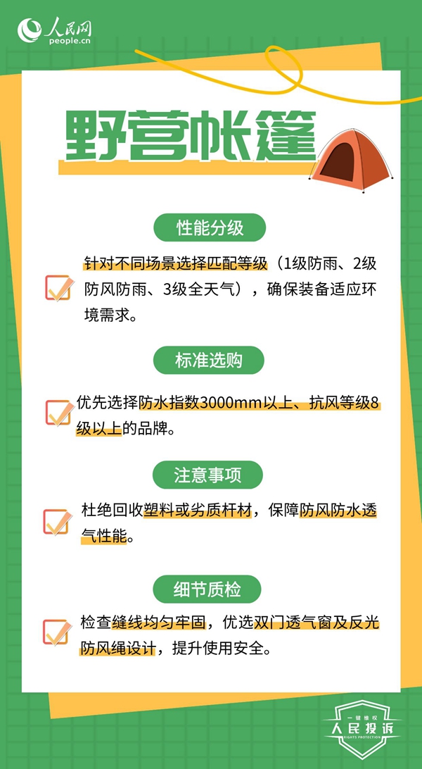 今夏持續高溫天氣來襲,烈日炙烤下的“清涼經濟”呈現出火熱發展態勢,與此同時“清涼刺客”也令消費者防不勝防。人民網“人民投訴”平臺推出“護航夏日消費”策劃,通過梳理各級市場監管部門和消協發布的權威消費提示,讓大家在炎炎夏日消費時避免“踩坑”。本期帶您了解夏日常用的幾類戶外裝備該如何選購。