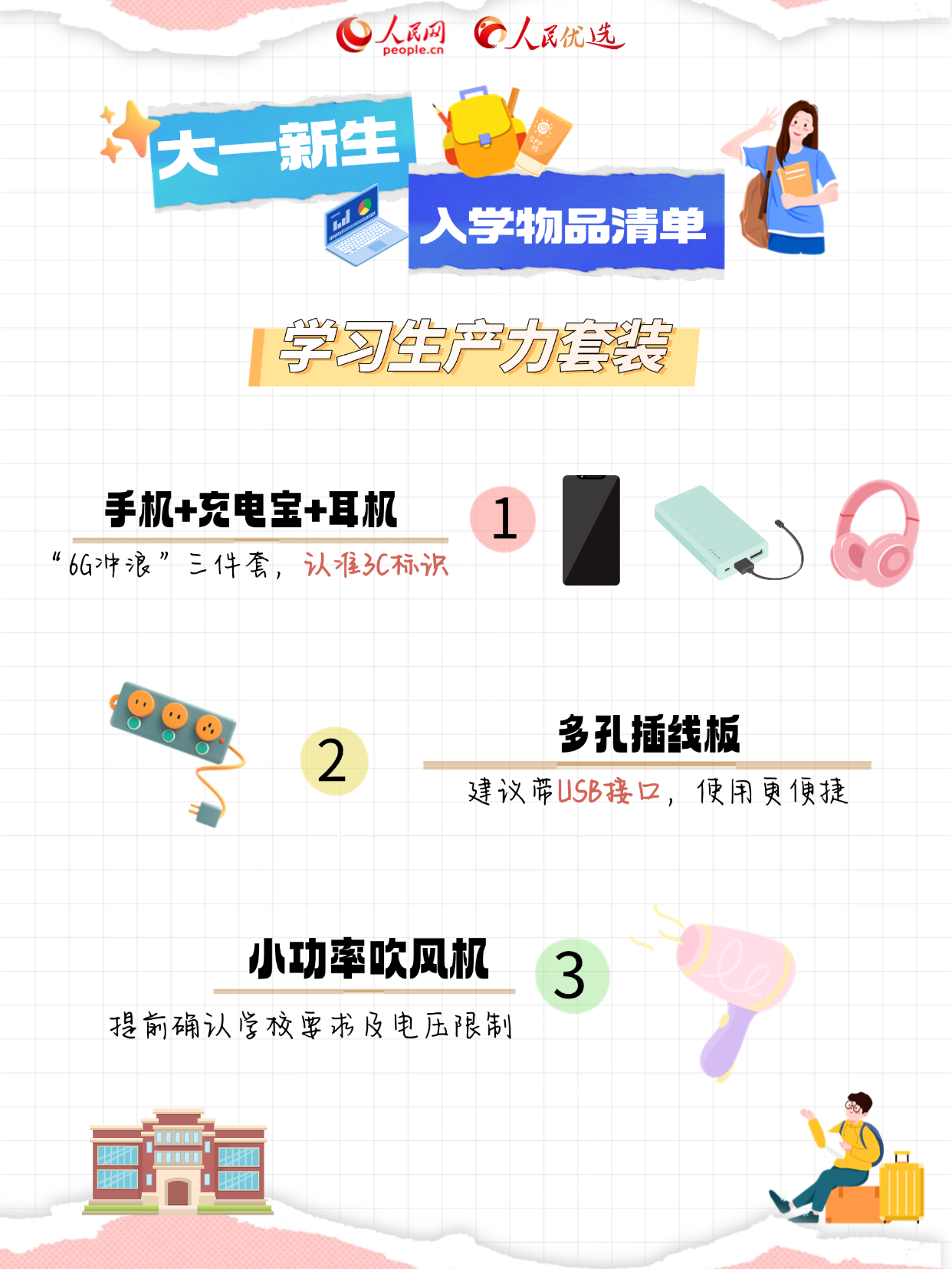 祝各位大學(xué)新生“解鎖新地圖”順利,帶上這份清單輕松開(kāi)學(xué)~