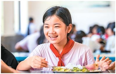 2025年9月2日,貴州省黔東南苗族侗族自治州從江縣剛邊壯族鄉中心小學的學生在享用免費營養餐。 |