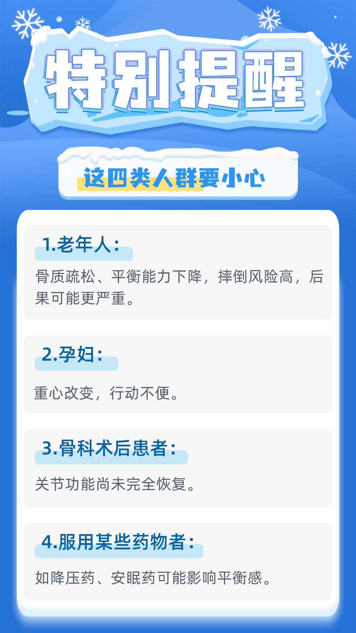 近日寒潮來襲,雨雪低溫導致路面濕滑,極易引發摔跤。每年冬雪季,因路滑摔倒導致骨折、扭傷的患者都會明顯增多。人民網《健康“醫”點通》欄目采訪了河南省職工醫院中醫科·中西醫結合科主任醫師張恒,總結了一份“雪天防摔秘籍”,助您安穩過冬!