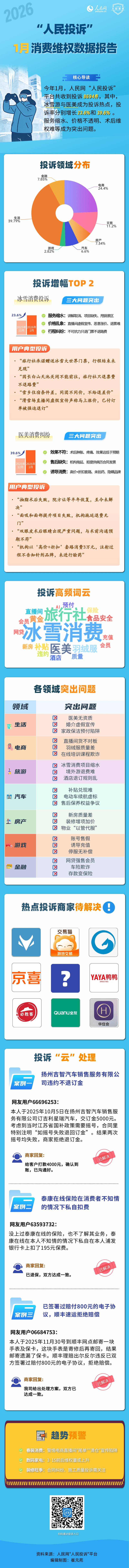 人民網(wǎng)“人民投訴”發(fā)布2026年1月消費維權(quán)數(shù)據(jù)報告